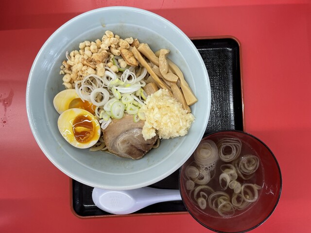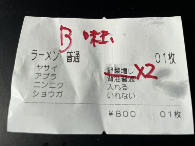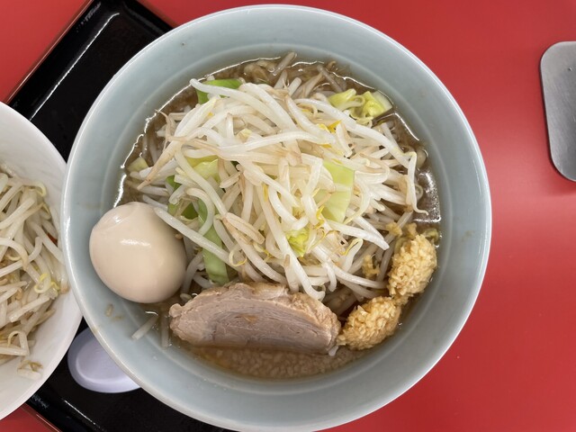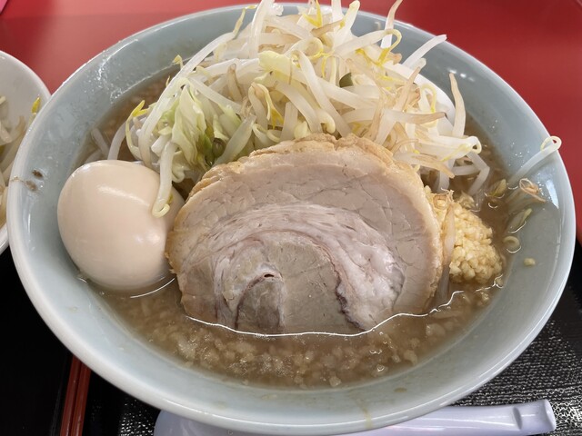 ラーメン普通ニンニクマシマシヤサイマシマシ+味玉の味玉