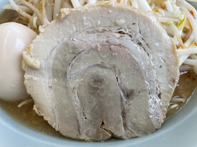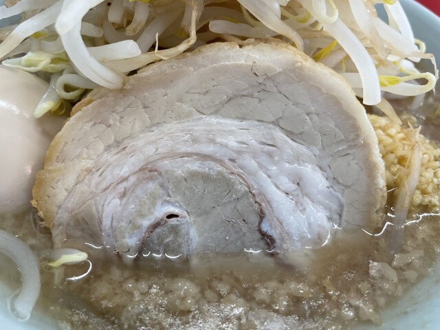 『ラーメン普通ニンニクマシマシヤサイマシマシ+味玉』の豚