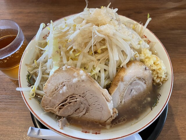 『ラーメン並盛ニンニクヤサイマシ』の天地返し
