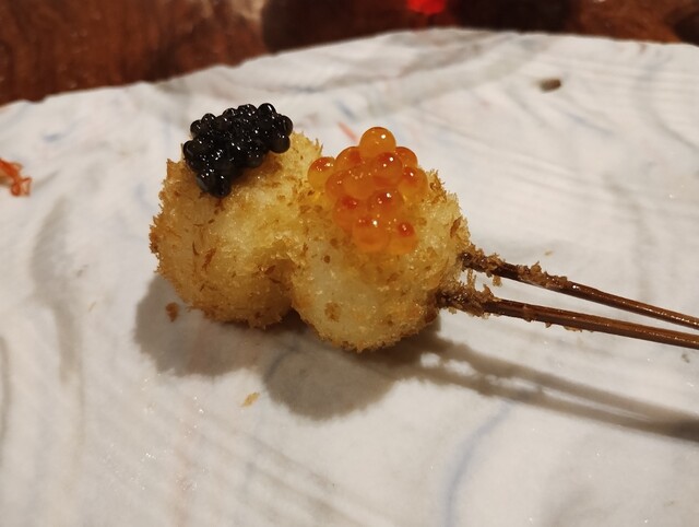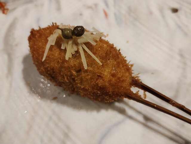 最初に椀物が、次にあしらいのようなものが出てきたので「あれっ?串揚げって聞いていたけど」と思いましたが、しっかりと串揚げのオンパレードでした。