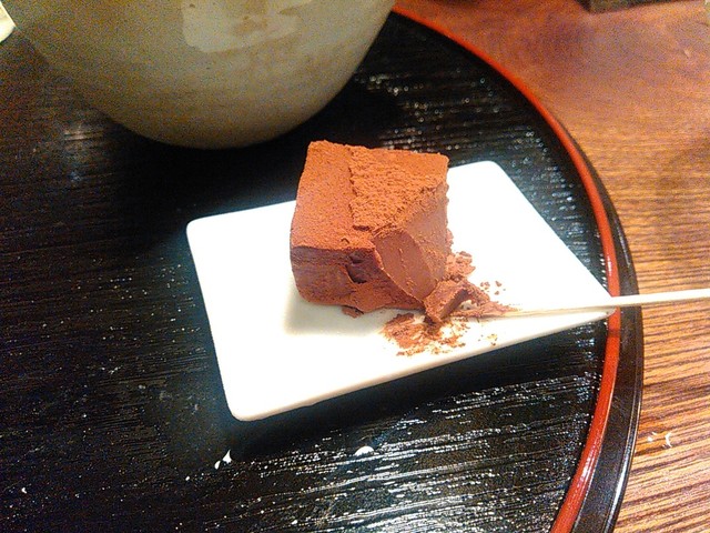 お酒はいろいろ利き酒の如く飲んでいったのですが、最後にいただいた「鷹長」には衝撃を受けました。甘さと酸味を両立させた強烈なお酒で、直前に生もとのどぶ(にごり酒)を楽しんでいたからなおさらです。実は翌日別店でも注文するほどのハマり具合となりました。呑兵衛道は本当に奥が深いです。まだまだ勉強が足りません。あ、鷹長の生チョコも美味かったです。