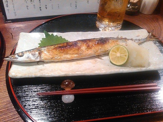 焼き魚も頼みたかったので秋刀魚の塩焼きを注文。変わりじゃがバターは自家製ハムが乗っていて味の変化を楽しめます。