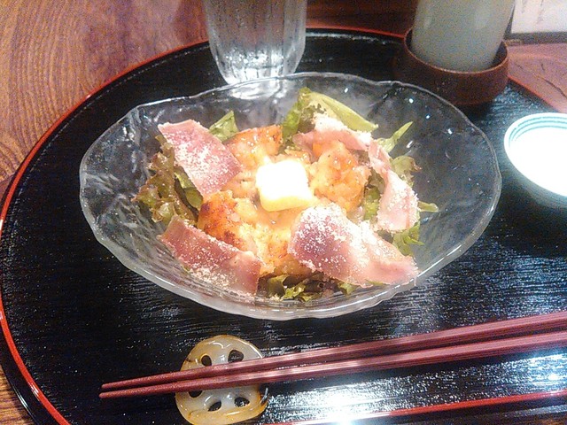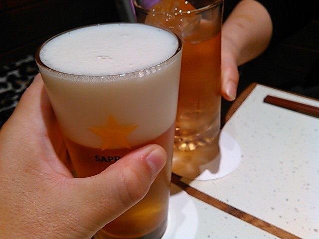 さっそくドリンクは紅茶ハイとビールを頼んで乾杯です。紅茶・緑茶は丁寧に煮だしたもので、私は紅茶の味は分かりませんがツレが香り高くて美味しいと言ってかなりハマっております。わたしはすぐ日本酒にしましたけど