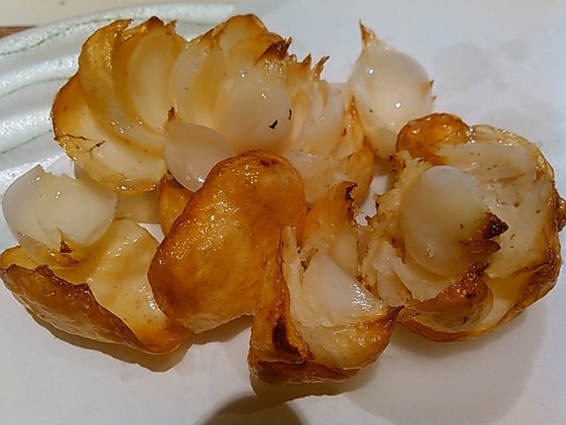 ゆりの根の素揚げは初めて頂きましたが、想像していた植物繊維的な食感ではなく、ホクホクして、まるで繊細なお芋を食べているような感じです。日本酒を2種類置いて、どっちが合うかなぁなんて行儀の悪い飲み方をしてしまいましたが、今日一番の楽しさを堪能しました。さすがに後半は、「干し赤貝の炙り」や「自家製からすみ」など安定のツマミでいただきましたけどね。