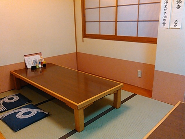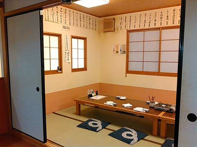 店内はテーブルと座敷の席が用意されており、グループでの入店に適した造りになっています。写真では空いていた畳座敷しか撮れませんでしたが、テーブル席も含めてかなり広い造りになっていて、居酒屋としてはかなり余裕のある環境があります。その割に客層は大衆的でもあり、サラリーマン・OLから家族連れまで幅広くの来訪があるようです。もっとも、お財布に余裕がある方が多い気はしますけどね。