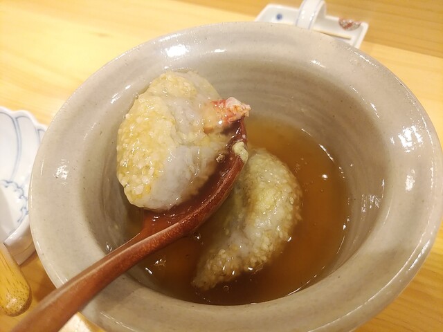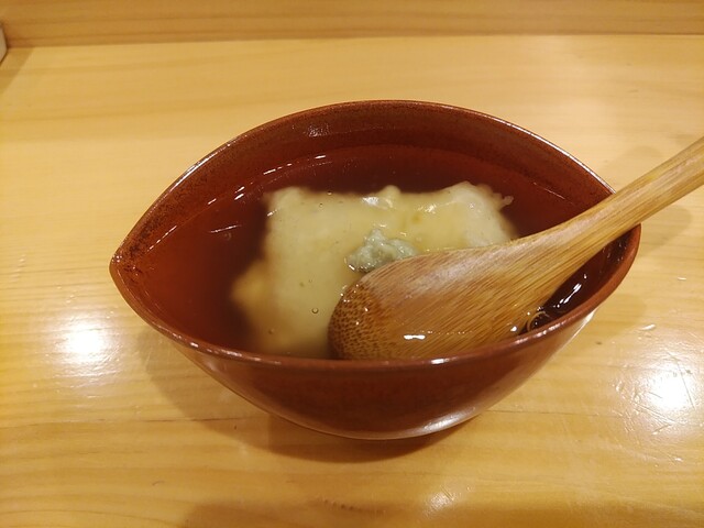 お店の特徴としては、ひと言でいうと「真面目」ですね。毎日大宮の市場で仕入れた新鮮な食材を、丁寧に調理・提供して、お客に喜んでもらう・・・そういうお店です。お通しで出た逸品は湯葉豆腐というそうですが、作るだけで1時間以上の作業があるそうです。