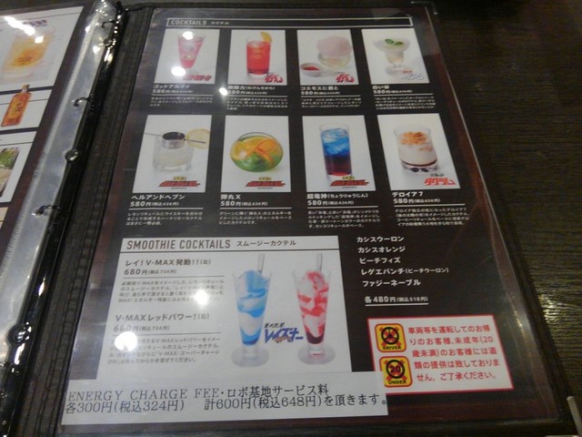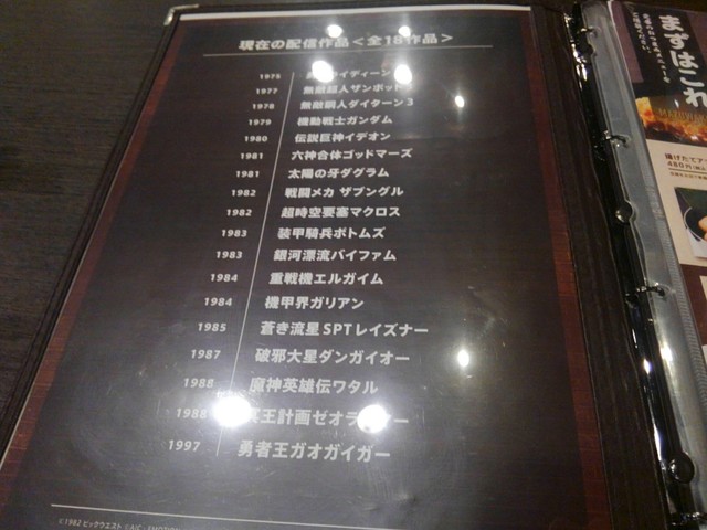 当店で視聴可能なロボアニメに関わる名前が付いた商品と、養老乃瀧などで普通に注文できるような商品です。これは非常に良いシステムだと思います。