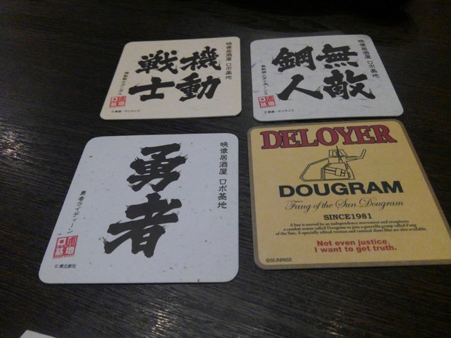ただ、そのままだと私などは10杯くらい飲んでしまいそうだったので、各自お好みで通常のサワーなどに切り替えていきました。ちなみに生ビール(黒ラベル)であれば580円、サワー類であれば480円です。これでしたら問題の無い量・値段ですので、ロボアニメがほどほど好きな人も、大量にアルコールを飲みがちな呑兵衛さんも、ストレスなく飲むことができることでしょう。