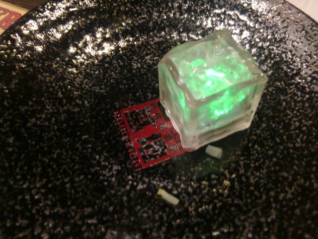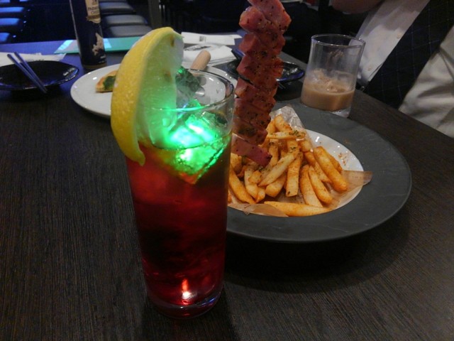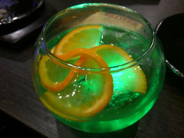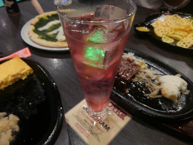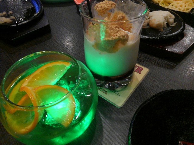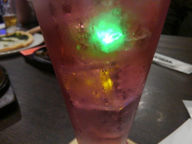 のような感じです。カクテルの幾つかはグラスの中が光っていて、蓄光素材かと思って中を詳しく見てみると、氷を模した発光物が入っていました。これはちょっと面白かったです。