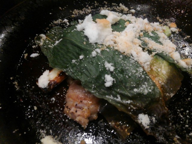当店のタイアップメニューの中で一番良かったのは、勇者王ガオガイガーのゴルディオンハンマーでした。塩の包み焼きを小槌で叩き割る趣向です。もちろんその際には、スタッフさんからやや大きめの木槌を渡されて、あの名場面を再現するような形での演出が用意されています。