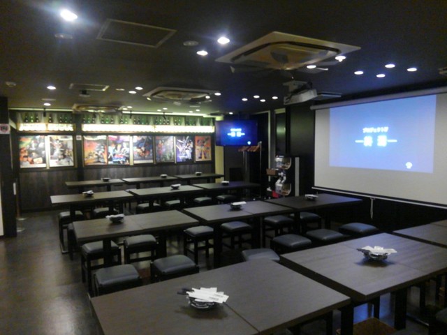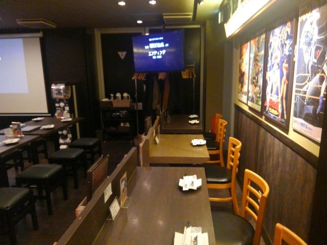 一つはカウンター席が逆向きに作られています。通常は壁向きになるのでしょうが、当店では大モニターで映像を見て楽しめるようになっているのです。