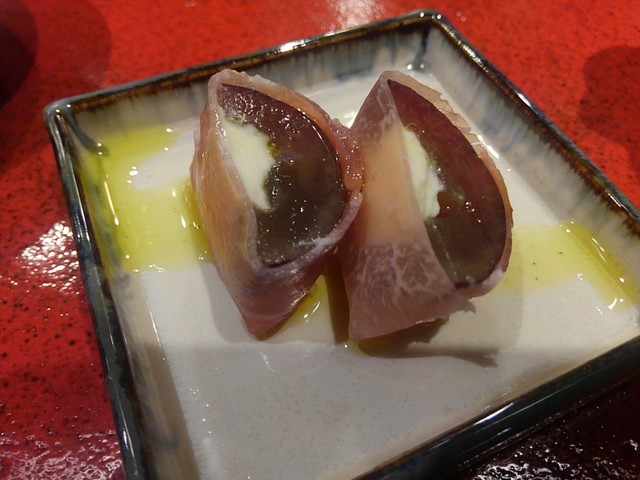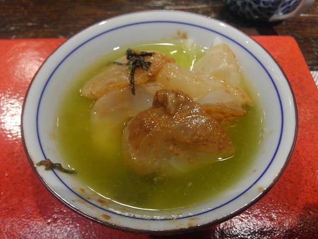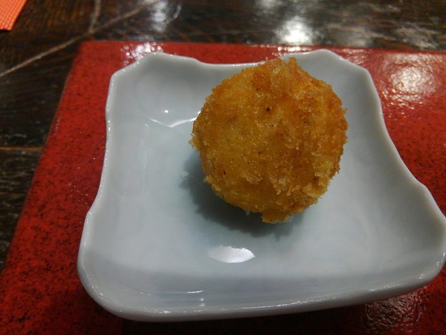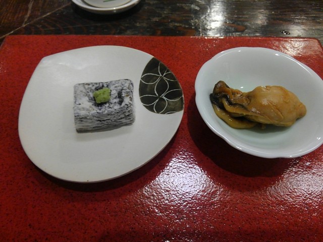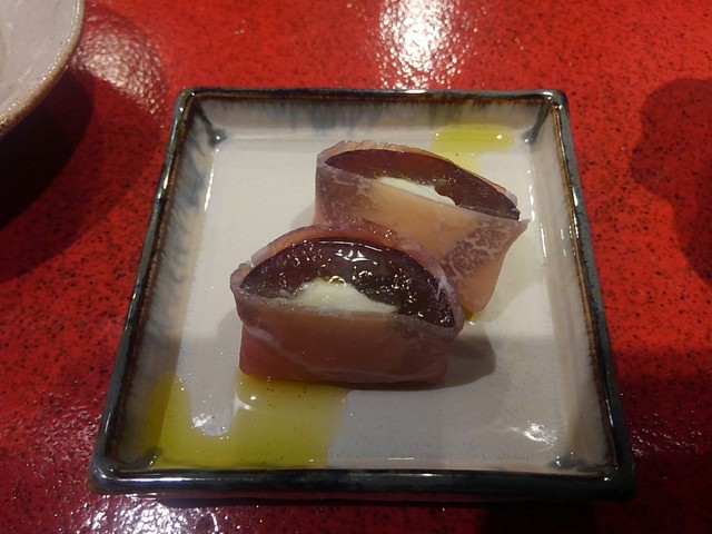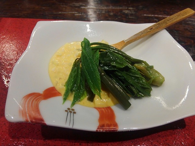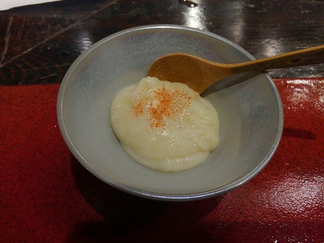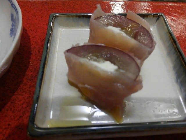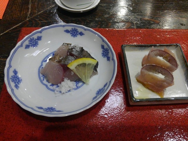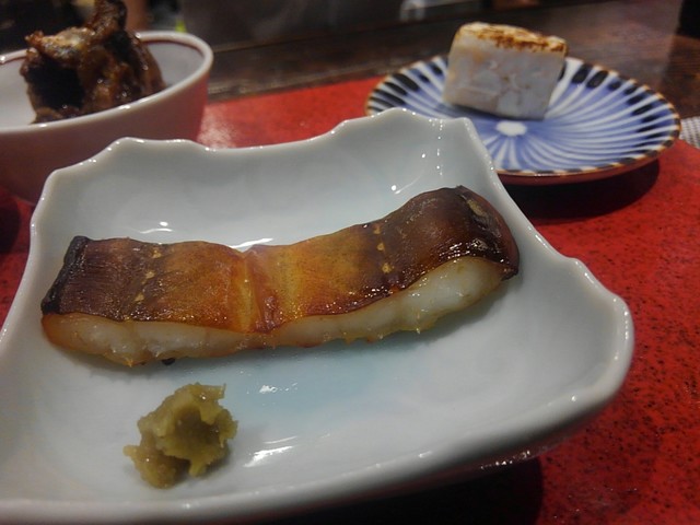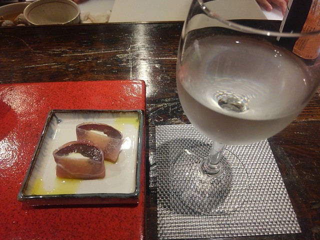 知人Aはごま豆腐に感動し、続いて女将さんのオリジナルだという酒粕漬けのチーズに感動しています。松の寿 純米吟醸 無濾過 生原酒、風の森 純米大吟醸 キヌヒカリ との相性に顎が外れるほど喜んでいて、料理の消化が遅れている私の卓上をジッーと見続ける始末。あんまり煩いので半分だけお裾分けです。女子か貴様はw