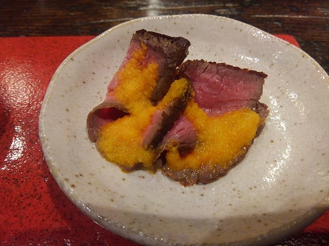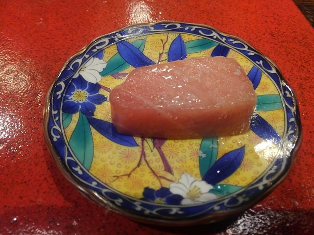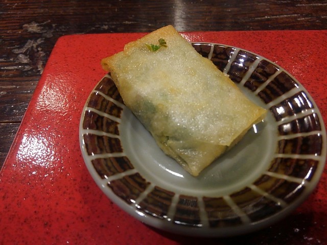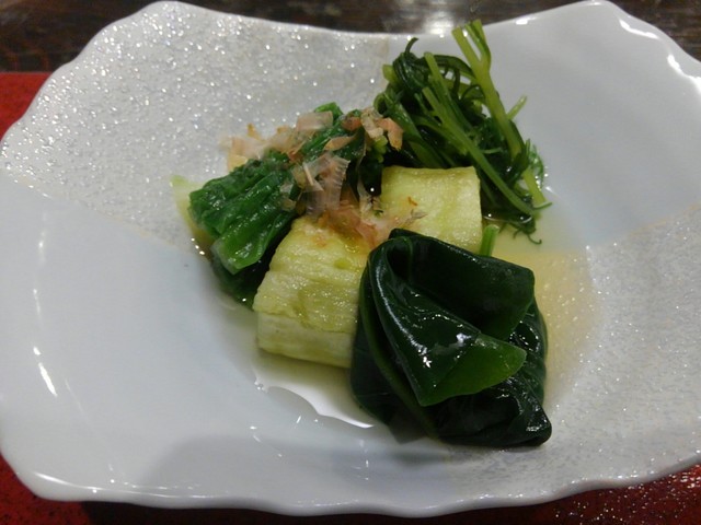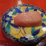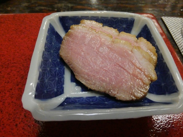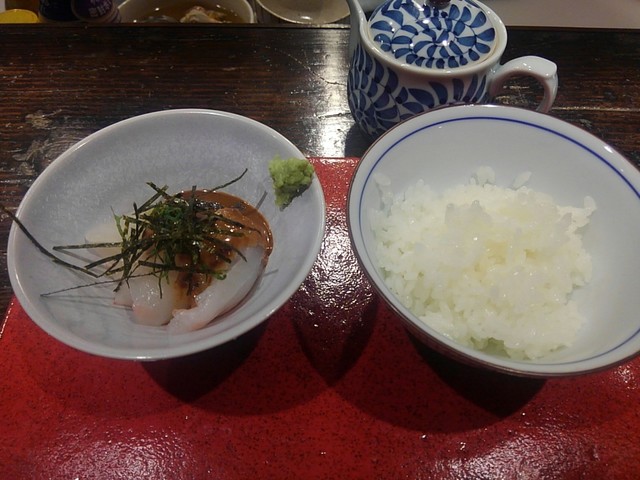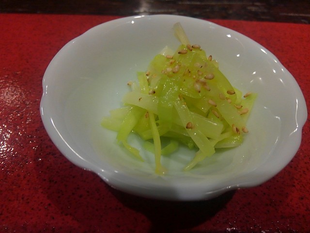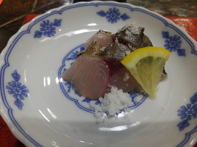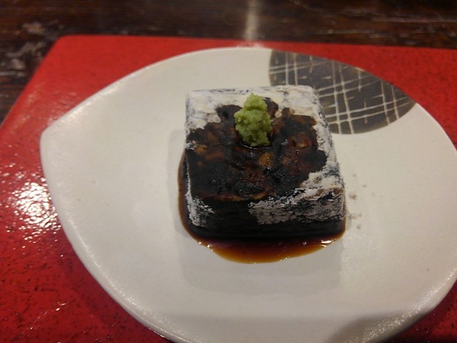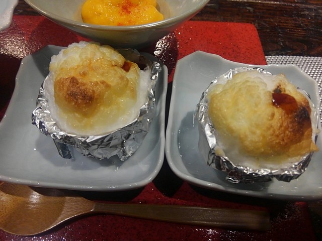 知人Aはごま豆腐に感動し、続いて女将さんのオリジナルだという酒粕漬けのチーズに感動しています。松の寿 純米吟醸 無濾過 生原酒、風の森 純米大吟醸 キヌヒカリ との相性に顎が外れるほど喜んでいて、料理の消化が遅れている私の卓上をジッーと見続ける始末。あんまり煩いので半分だけお裾分けです。女子か貴様はw
