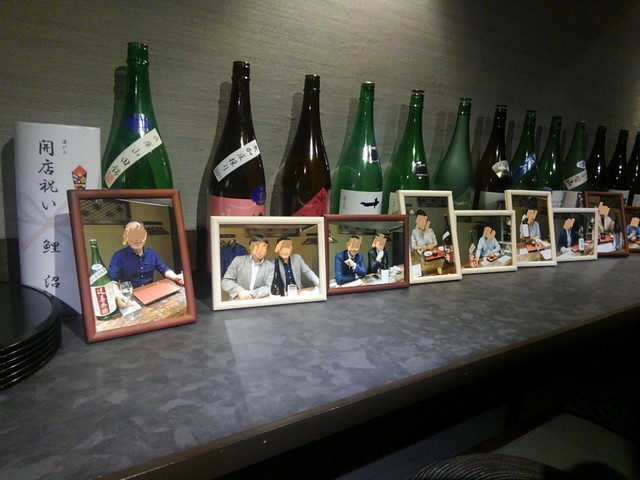 一方で、当店のオーナーさんは全国にある蔵人の方々とも親交があるようで、それゆえに希少酒の入手と提供が可能になっていて、系列店の品揃えの良さはご存知の方も多いと思います。その証拠として一枚の写真(一番最後の写真)をアップします。壁沿いの席に何十枚かのスナップ写真が飾ってあるものです。