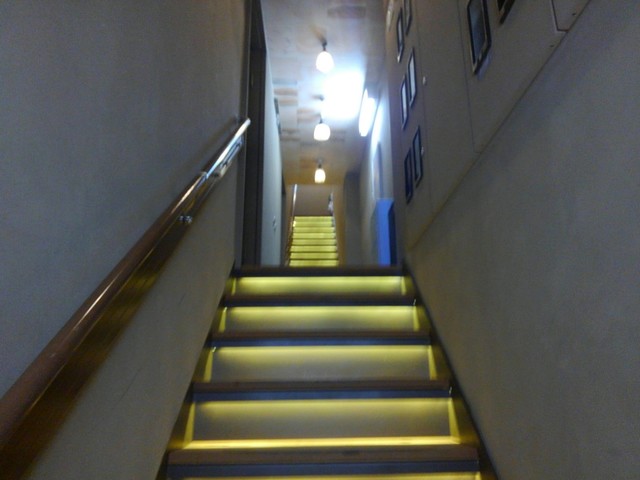 階段を一直線に3階まで上がります。やや激しい雨天の中でしたので笠置きにビニール傘を突っ込んで店内に入ります。