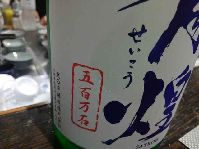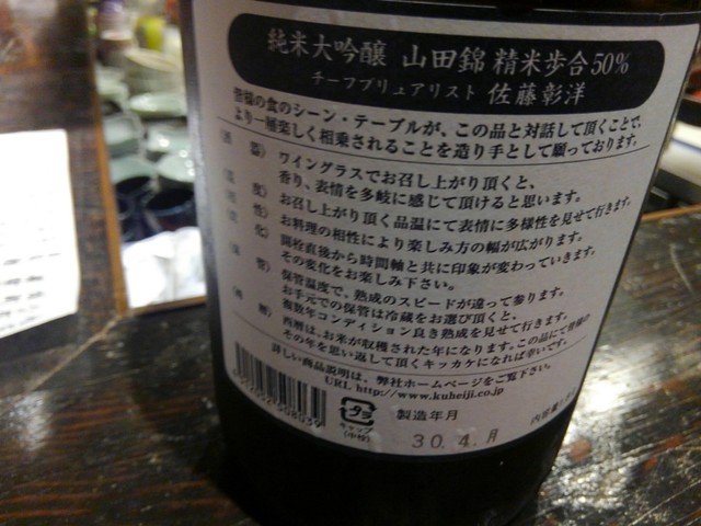 佐賀県/馬場酒造場の能古見 純米大吟醸 はそれ自体も知られた銘酒ですが、よく見ると何だか手張りのラベルが貼ってあります。なになに…