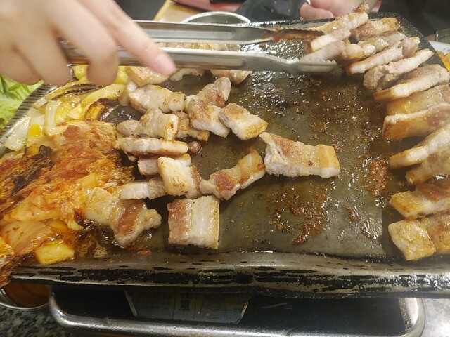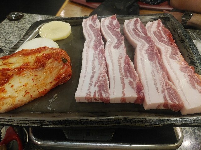さて、次いで単品としてのサムギョプサルを2人前で注文します。1280円×2です。