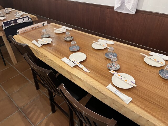 店構えは日本酒居酒屋(アサヒもあるよ)らしい杉玉が吊るされていて、木の素材を活かした造りもあって内装は清潔感があります。