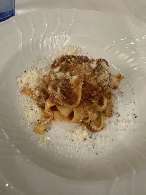 猪狩シェフの渾身のビステッカはもちろん(みずみずしく味わい深く、焼き切った香ばしさも加わり悶絶の美味しさでした)、丁寧に仕立てられた前菜もパスタも(今日は冷静のボロネーゼカッペリーニ)リゾットもデザートも最高に美味しい上に、マダムの柔らかく素敵なサービスも最高でした。
