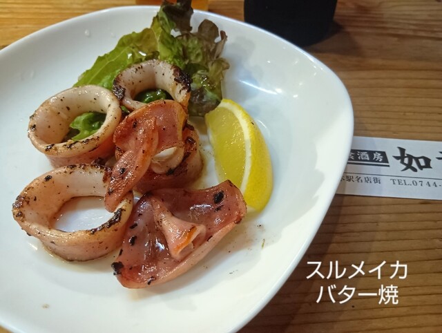 期待通りのぷりっと柔らかイカとバターが少し焦げて絡まったのが美味しい...。数滴、醤油を垂らして味変も。
