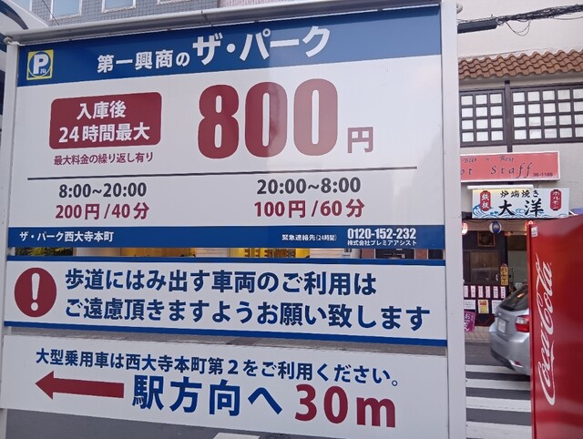 最寄りコインパーキング。居酒屋「大洋」から踏切方向へ折れると吉富。