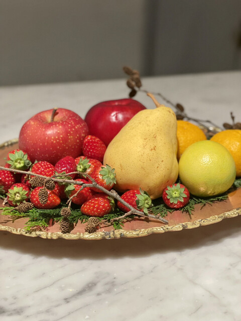 梨は喜界島の花良治蜜柑の外皮や果汁とマリネし、レモンバーベナはオイルとアイス。