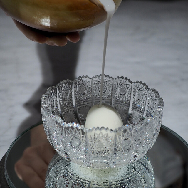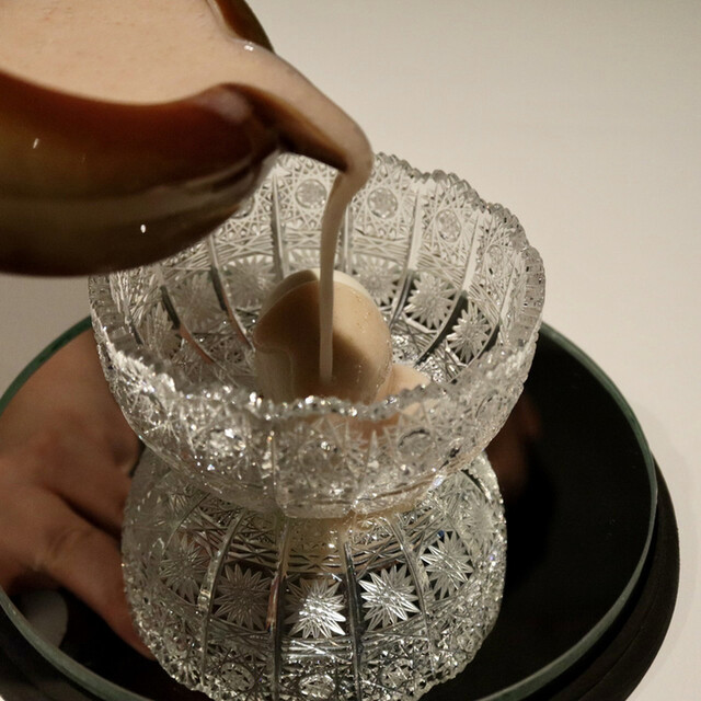繊細な飴細工で、壊すのが勿体なかったのですが、上から食べるのではなく壊して食べて下さいとのことだったので思い切って壊して頂きました。