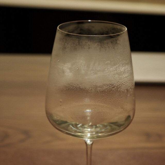 中が見えない外観をドキドキしながらドアを開けました。以前はスタイリッシュな雰囲気でしたが、新店舗は温かみがあり、高級感が漂っています。以前より広いですが、席数はカウンター席×6。