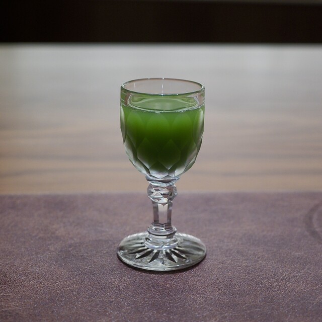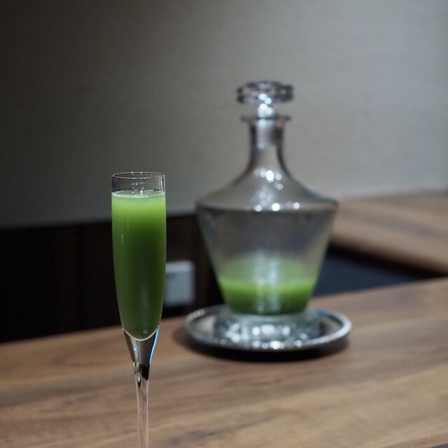 近江大根と蕪、水と塩のみ使い、仕上げにみつ葉を使った野菜ジュース