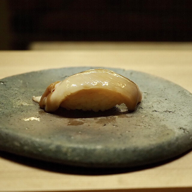 鳥貝は石鹸のような形の固形のヒマラヤ岩塩にこすって頂きました。絶妙な塩加減になって美味しかったです。
