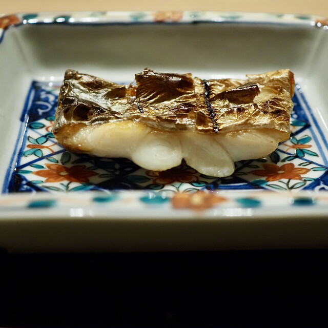 芯が残ったアルデンテのような酢飯がノドグロの下に入っていました。上からミモレットチーズがかかっていてリゾットのような味わいでした。