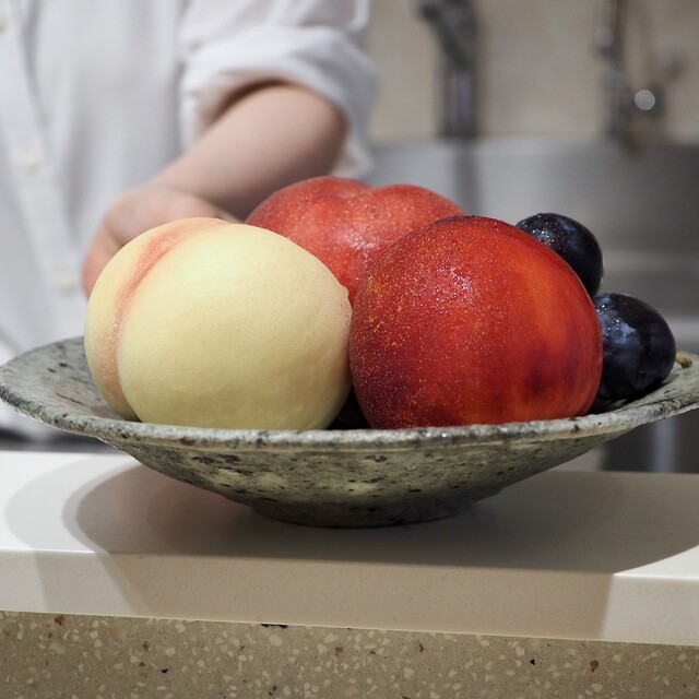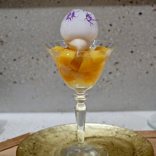 大きくカットされた桃はとっても甘くてジューシー。バニラやアーモンド、梅のソースが一体となり桃の美味しさを引き立てていました。
