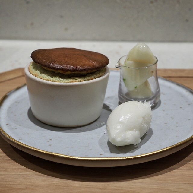 コースの中でもお食事系の一皿は楽しみの一つです。絶品フォカッチャと一緒に香りのいい甘みのあるアスパラやポテト、ベーコンが入ったスフレは食べ応えがあり、おかわりしたいくらいでした。