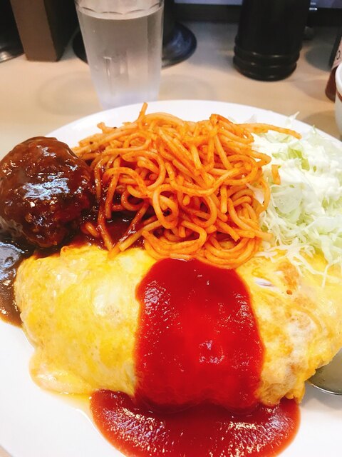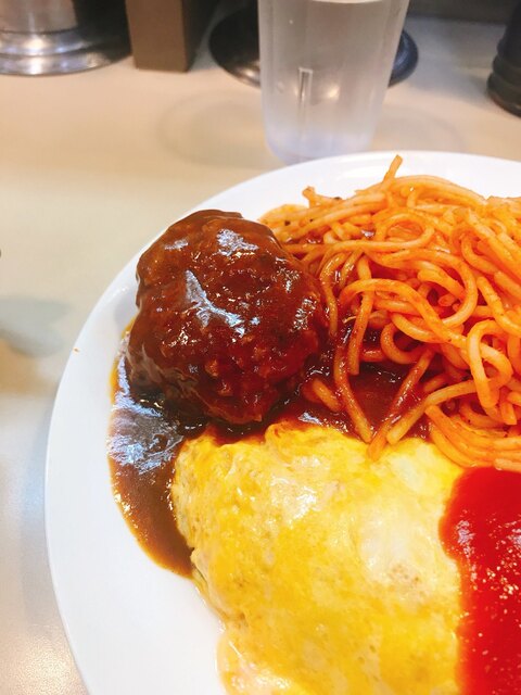 おすすめはオムライス。ほとんどの方がオムライスです。オムライスにこんなにというほどナポリタンが
