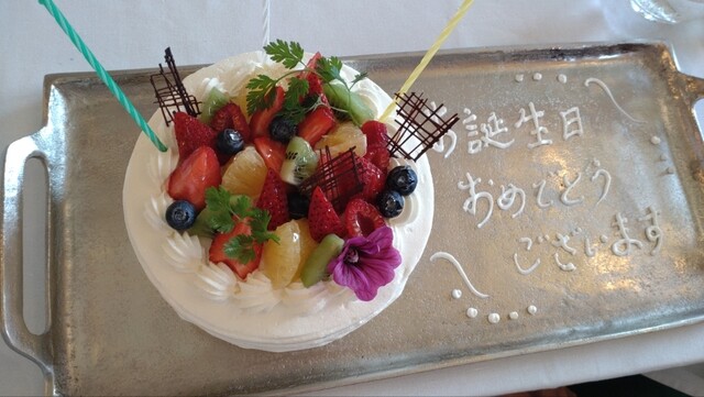 誕生日のケーキは、フルーツたっぷりで美味しかったです。