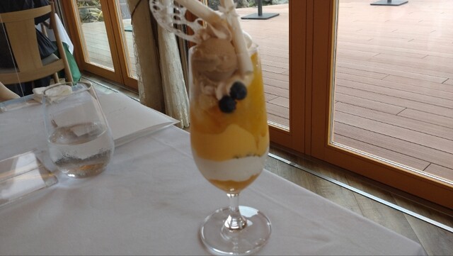 デザートは、淡路柑橘のクレープジュゼット。+1200円で、鳴門オレンジのパフェに変更出来ます。