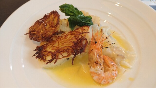 真鯛のジャガイモ焼き新生姜風味のブールブランソース。