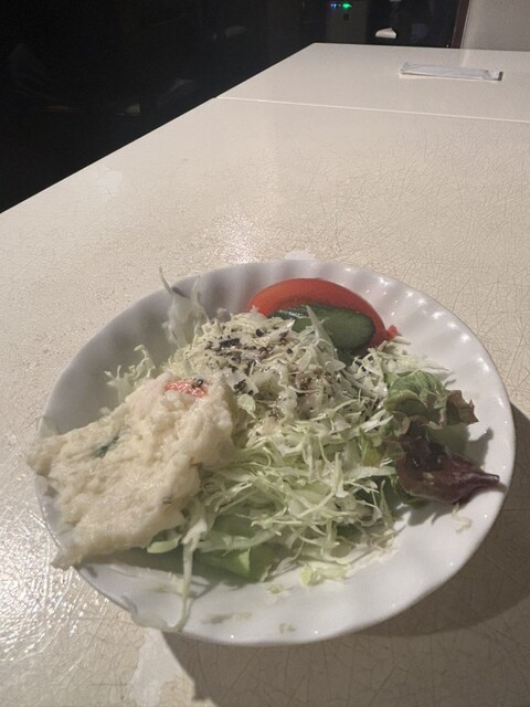 先ず出てきたサラダですが、野菜が高いこのご時世なのにしっかりとトマトときゅうりが入っています。昔からのスタイルを崩さないところに頭が下がります。そしてドレッシングの絶妙な塩気と酸味。食欲が増してきます。ポテトサラダも言うことなし。メインが美味しいに決まっていると確信させてくれました。