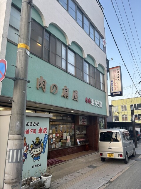 こちらは1Fが米沢牛を売る肉屋さんで、2Fがレストラン。なので、メニューの牛=米沢牛という素晴らしいお店です。しかも値段がとってもリーズナブル。著名人も数多く訪れているようで、橋田壽賀子さんやキャイ〜ンのウドちゃん・高田文夫さん他の色紙が飾られていました。
