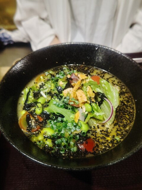 黒ごま坦々ウドンも注文しました。めちゃ美味しかったです。ウドンの麺はもちもちシコシコしてるし、スープは美味しいし、最高です。