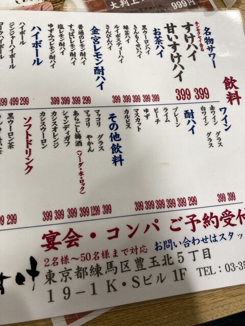 飲み物もとってもお手頃。ビール¥299ですよ!もっとデカデカ書いていいと思います。