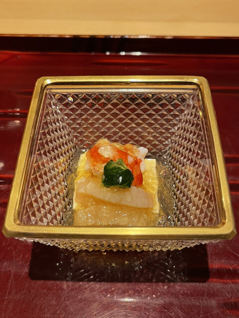 ○車海老、帆立貝、卵豆腐、土佐酢煮凝り