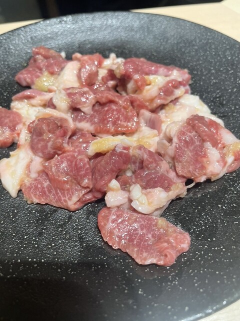 一品目は(ツラミ刺し)でしたが、息子はいきなり(カルビ丼)!(◎_◎;)ごはんふた口程度に立派なカルビが2枚のっかってます、テンションの上がった彼はその後も食べる食べる…肉飯肉飯…のループでしたd(^_^o)