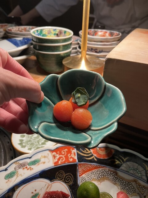 季節の汁物で温まり、近江彦根和牛の京味噌漬けは、味噌の深みと和牛の香りがしっとり馴染んでおり、ご飯が欲しくなる上品な濃厚さ。そして名物の「泡醤油とトリュフはらみ刺し」。これは本当に圧巻。ふわっと香るトリュフと、泡状の醤油の軽やかさが赤身の旨味を最大限に引き出し、この店の世界観が一気に伝わる至福のひと皿でした。