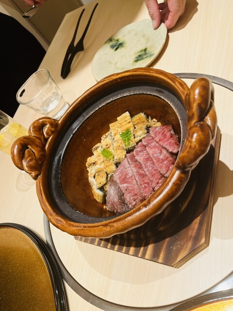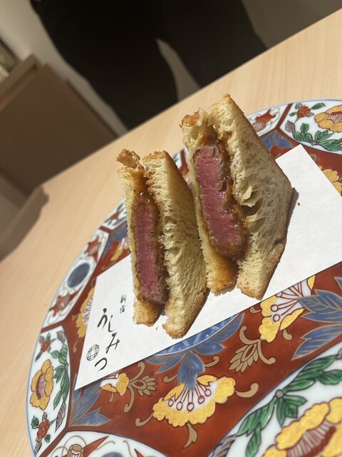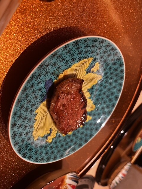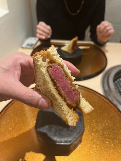 そして真骨頂はヒレ肉のブリオッシュカツサンド。ザクッとした衣とふんわり甘いブリオッシュ、そこに柔らかく火入れされたヒレが重なり、噛むたびに幸福感が広がる。焼きすきは濃厚卵黄を絡めていただく王道の一皿で、ロースの甘みとタレのコクが見事に調和。赤身肉もタレ違いで用意され、最後まで飽きさせない構成。
