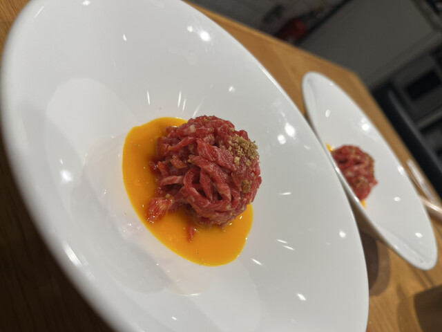 コース後半の大判サーロインすき焼きは、このコースのハイライト。さっと焼いたサーロインを卵に絡めることで、濃厚さとコクが加わり、満足度が一気に最高潮に達します。締めものは冷麺やカレー、クッパなど複数から選べ、食事の流れや気分に合わせて調整できるのも好印象。