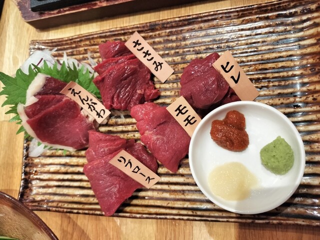 生の馬肉めちゃくちゃ美味しくてヘルシー、ユッケが最高に美味でした。もちろん加熱料理もとても美味しかったです。どれもボリュームがあり、大満足でした。パクチーサラダがお肉とよく合います。絶対におすすめです。お酒も行った日はハイボールがお得でした。