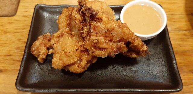 いつも通り待ち時間を感じさせないで着丼。写真の通り見た目美味しいそうでしょ?そう、美味しいんです(過去にゆず味噌らぁめんのレビューありますのでご参考の程)!麺をすすっていると唐揚げが登場!意外と1個が大きい!1個がスーパーのパックに入ってる唐揚げで言うならの2個分強。見た目からしてしっかり高温でカラっと揚げられているのがわかります。食べてみても期待を裏切られないジューシーな美味しい唐揚げですよ(#^.^#)そしてこれとMISOディップの融合がステキ過ぎますよ!そして胃もたれしない!ここまでで¥250は嬉しいサイドメニューですね!!!これ、しかもテイクアウト出来るんですよ!チキンのテイクアウトで¥250でピンときたそこのあなた!今思ったこと、それ正解ですw子供サンにも安心して喜んで食べてもらえそうですよ~!