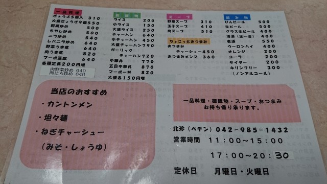 お昼は妻のリクエストを聞いたので夕食は自分のリクエストを押し通し、久しぶりに日高の北珍サンへ。19時過ぎに来店。先客2組、後客2組。コチラに来るといつもカントンメンばかりをオーダーしがちなので今回は五目タンメンをチャーハンセットでオーダー。