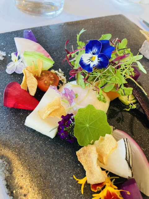 野菜を土から抜くイメージで召し上がって下さい、と♪見め麗しく楽しい演出がひらまつさんらしい✨